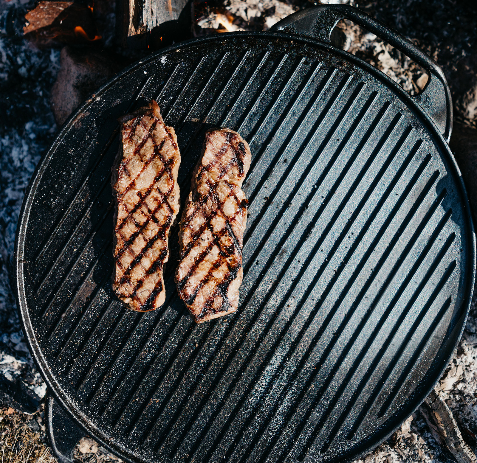 Vendbar grillpande af støbejern, med en glat og en riflet side. Leveres med beskyttelsespose. Diameter 42 cm.